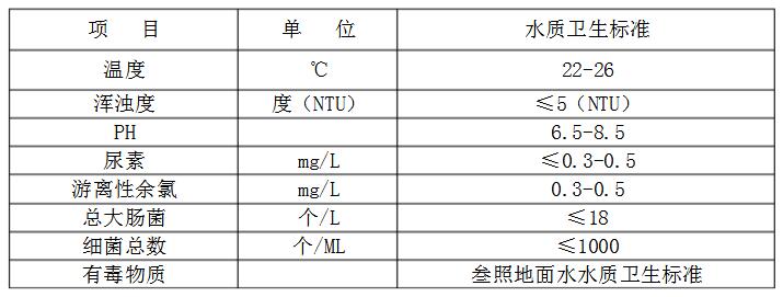 隨著人們生活水平的提高,游泳館已成為人們經(jīng)常光顧的娛樂、休閑、體育鍛煉的重要場所之一,為保證人工游泳池的水質(zhì)標(biāo)準(zhǔn),我國目前已頒發(fā)了《游泳場所衛(wèi)生標(biāo)準(zhǔn)》和《游泳池給水排水設(shè)計規(guī)范》兩個法規(guī),其中對人工游泳池的水質(zhì)標(biāo)準(zhǔn)規(guī)定如下: